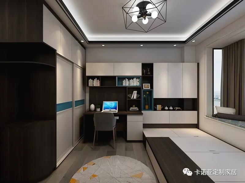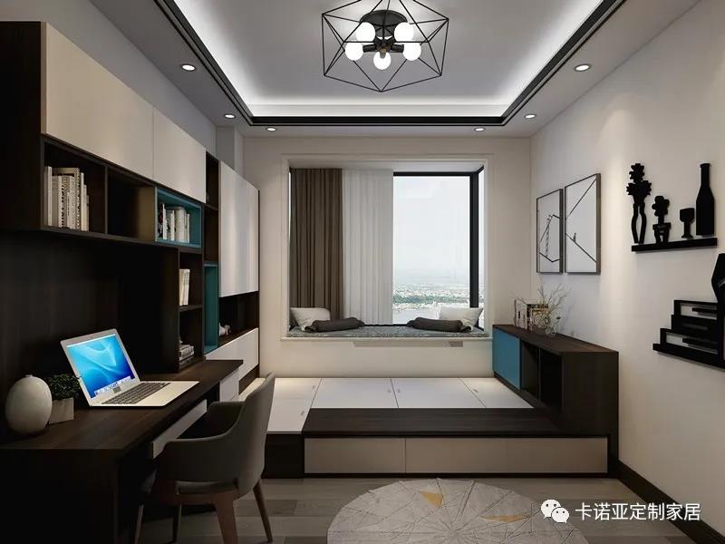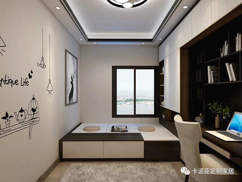 讓空間寧靜中又不失朝氣。榻榻米、衣櫃、書櫃、書桌一體化設計,