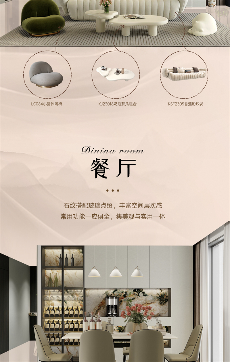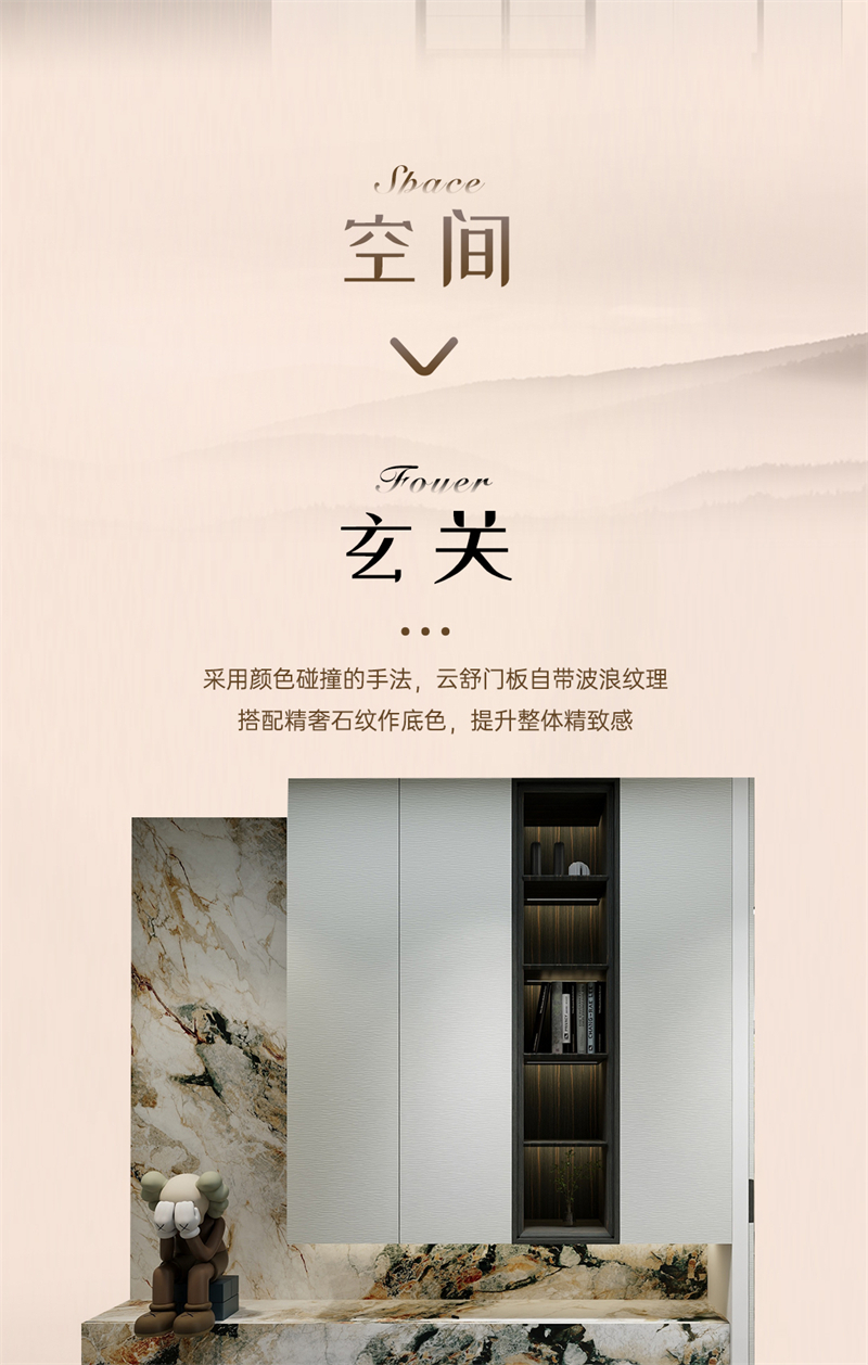 借助雲水紋的元素,通過流動的線條,波動的紋理和現代的設計手法,打造舒適、放鬆、愉悅的家居氛圍。