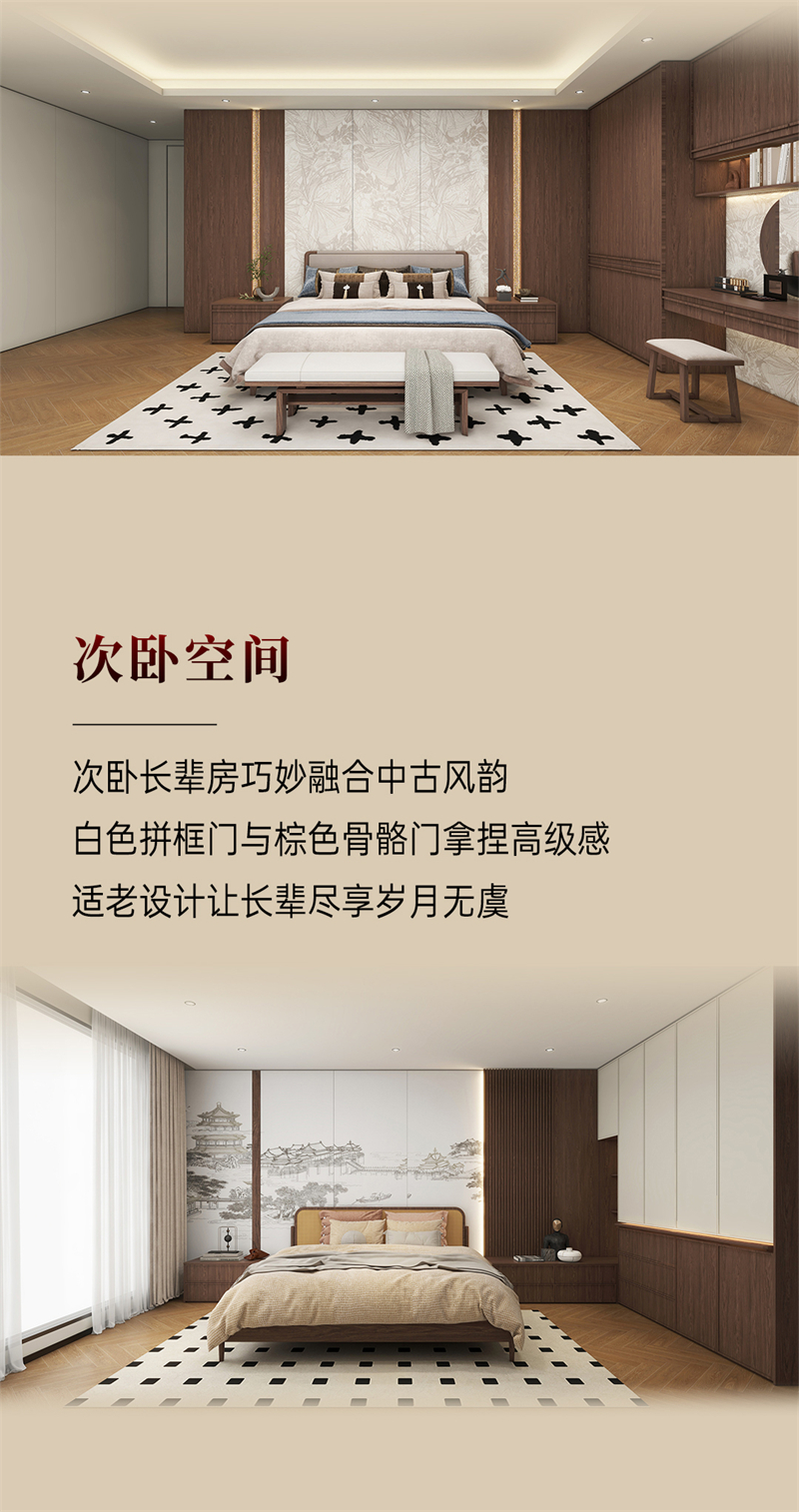 棕色胡桃木紋為主色調,搭配白色暗紋,細膩的藤編門與硬朗的骨骼門讓人聯想到古老的家具,