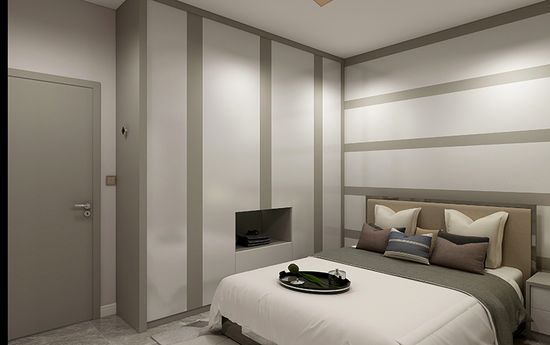 現代簡約風格的裝修讓整體空間有感覺,搭配起來幹淨且舒適。牆裙式護牆係統由印象白+深灰風之穀組合而成,簡約經典的灰白色搭配,帶來寧靜優雅的氛圍,搭配原木色儲物格,通透的格局流露出素雅內斂的生活態度。