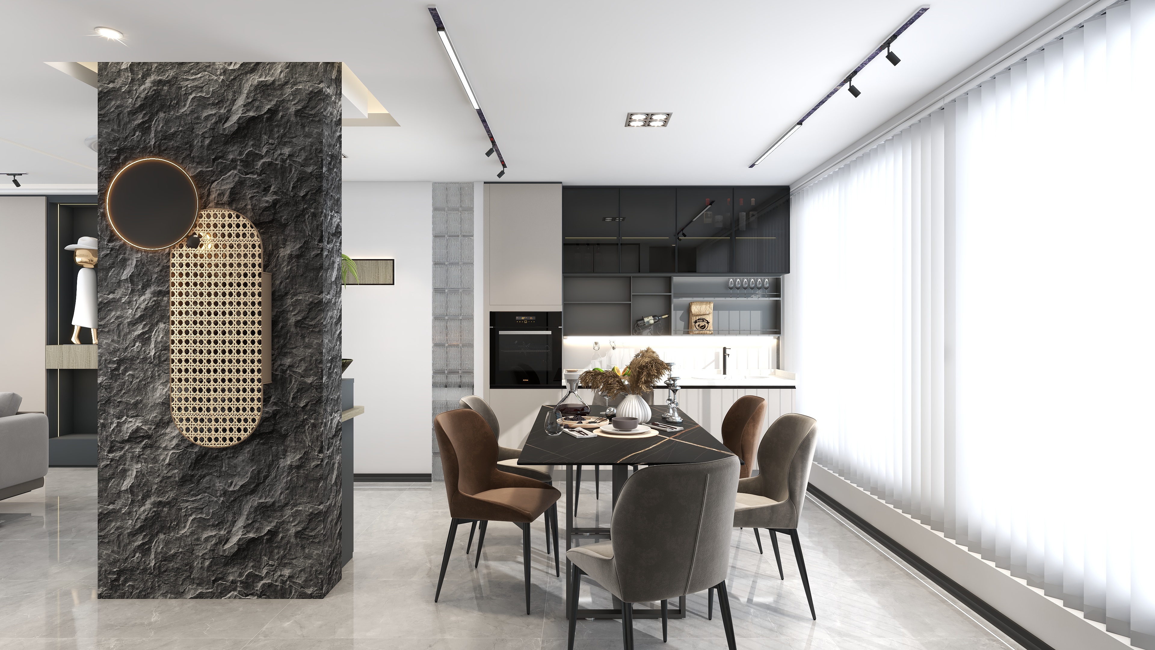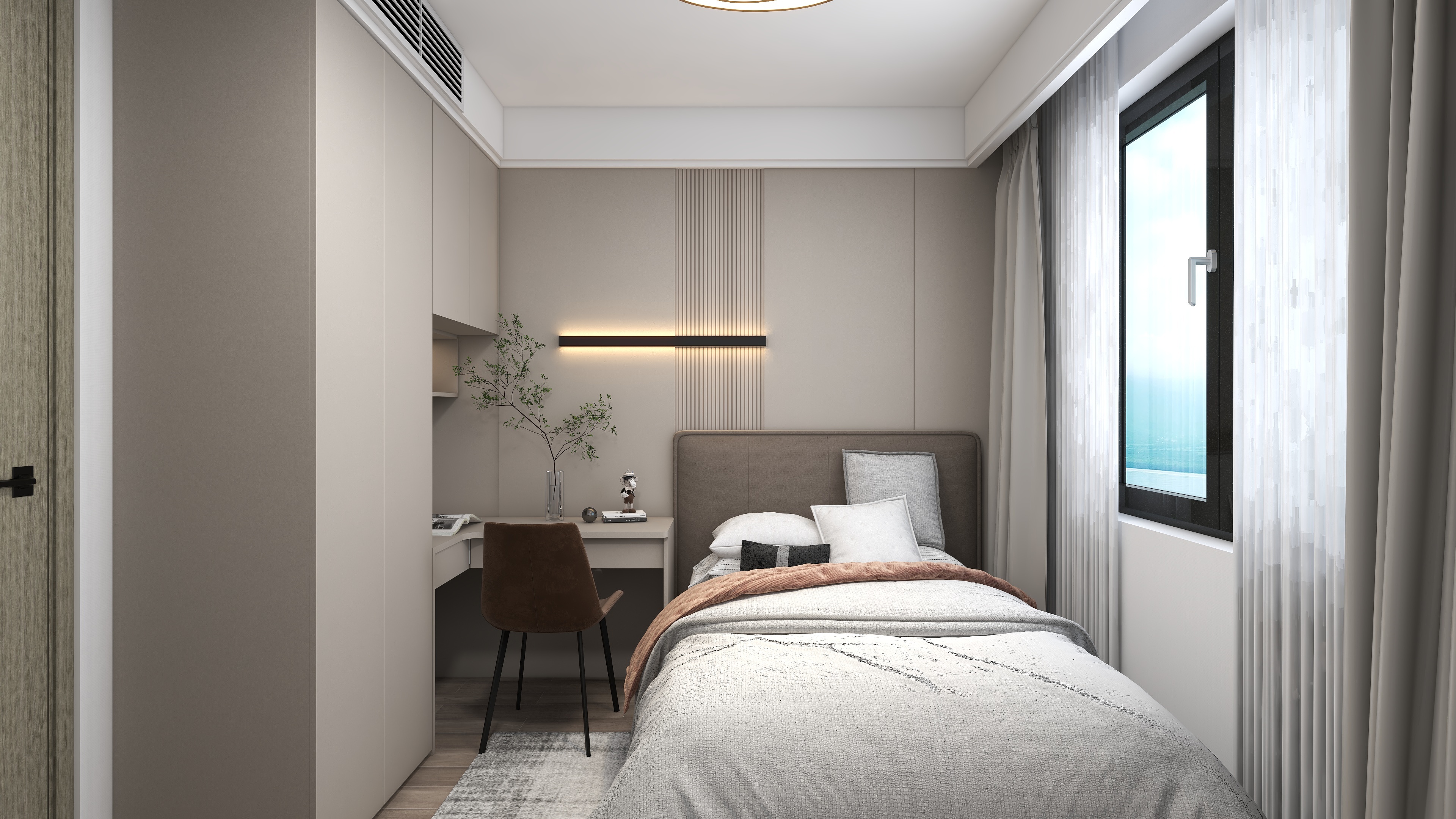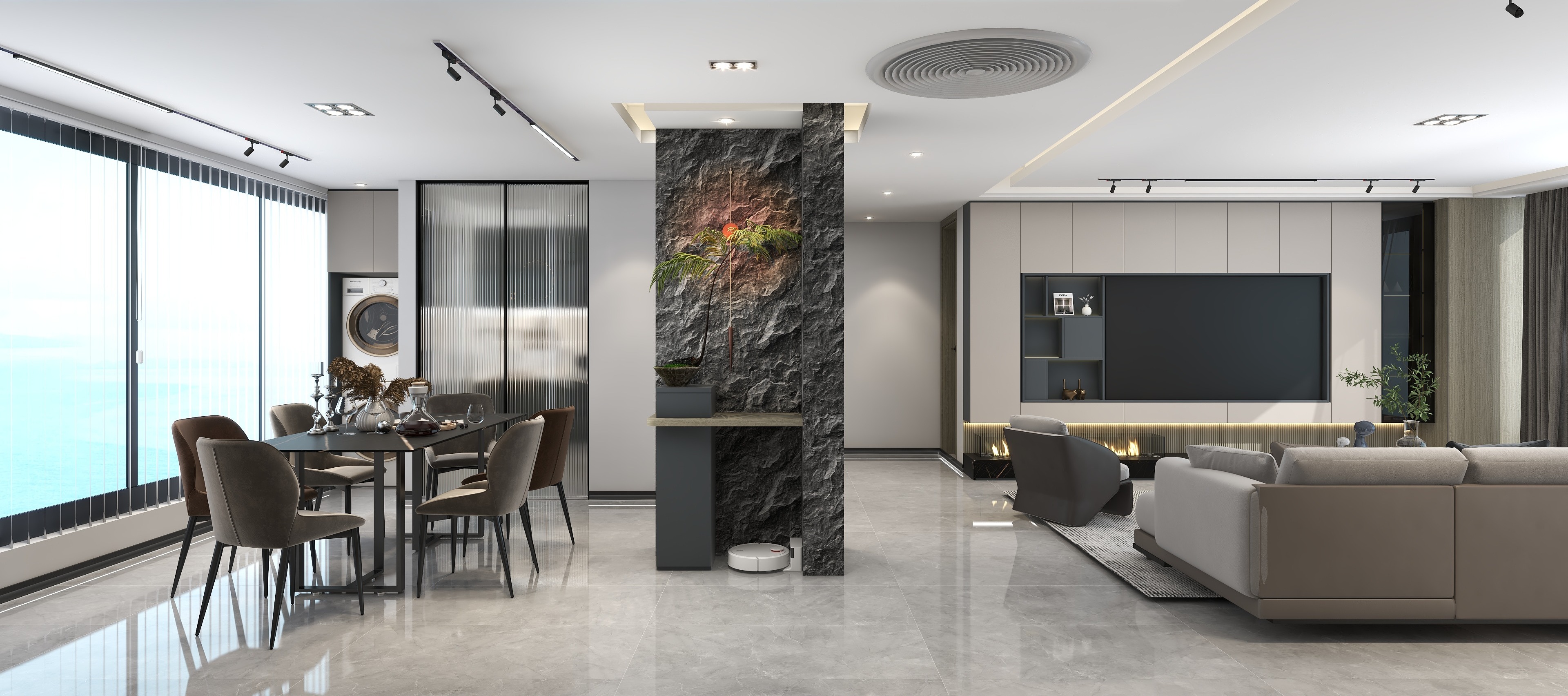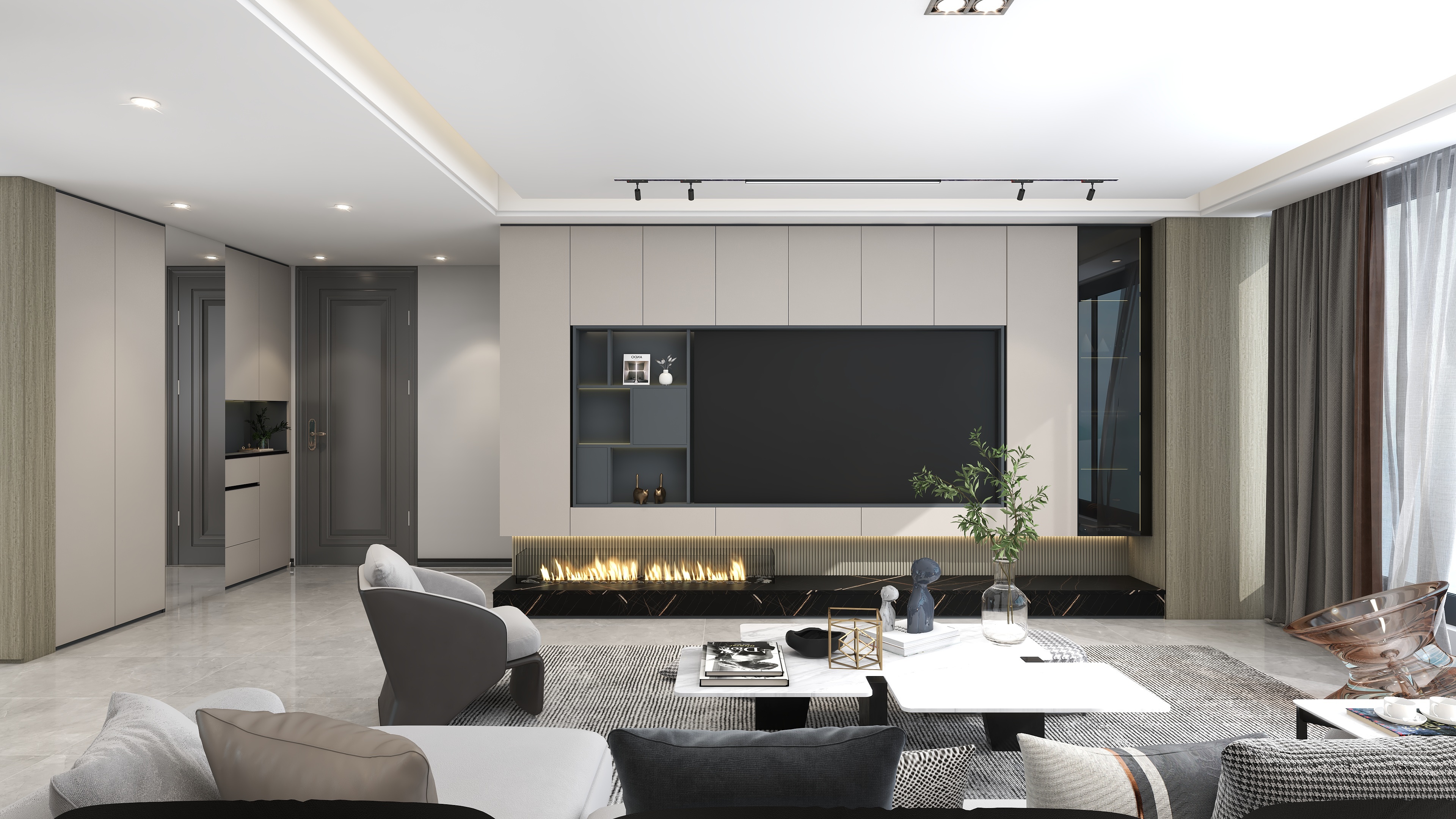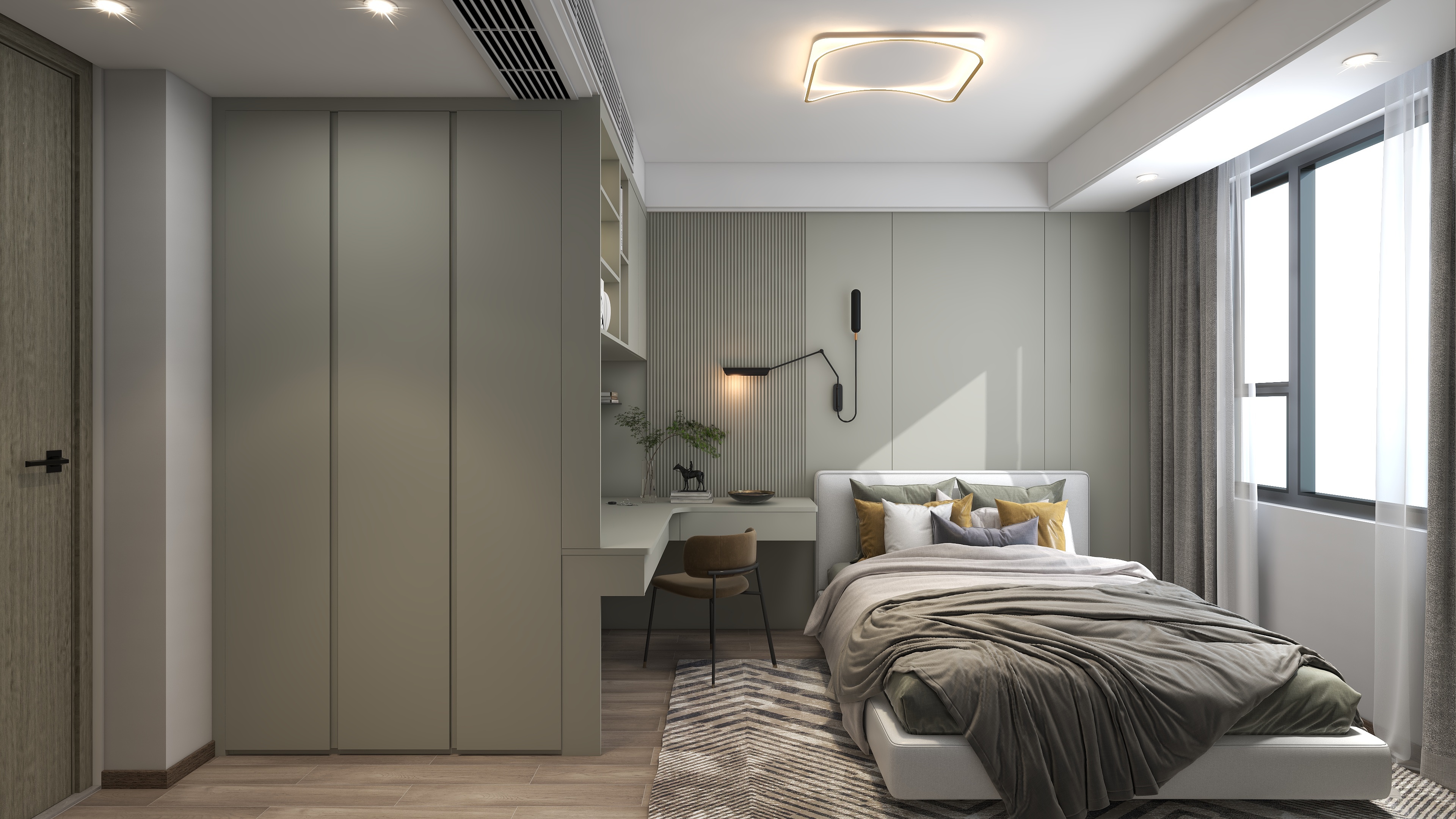 《櫟白》本案是四口之家,有三歲的孩子和老人,設計師根據每個人的需求與習慣重新規劃了空間,保留了三個房間,整體色調運用了莫蘭迪的配色靈感,91香蕉污视频主要打造的是櫃、牆、門一體化設計,同色係的高顏值整家,整體以收納娛樂生活為一體,以靈活互動與自由開放為主旨,適當的留白,優化細節,衍生個性,締造出視野闊朗的簡約格調。