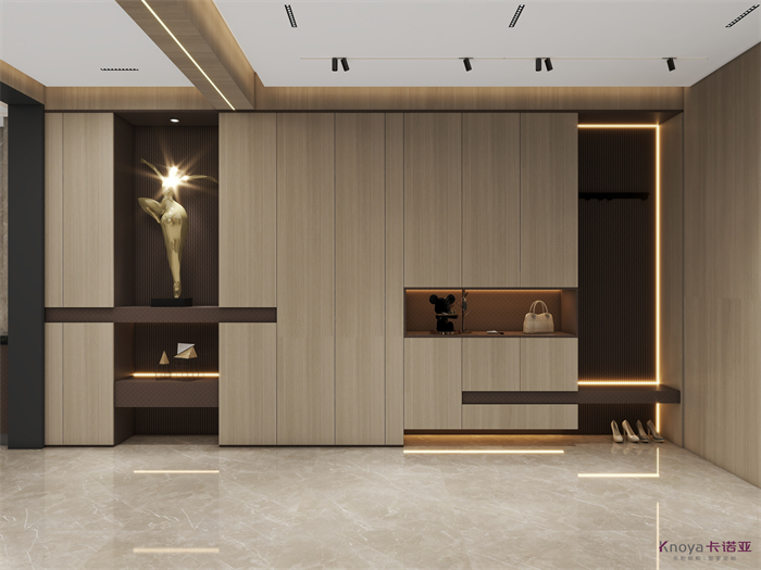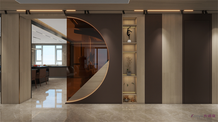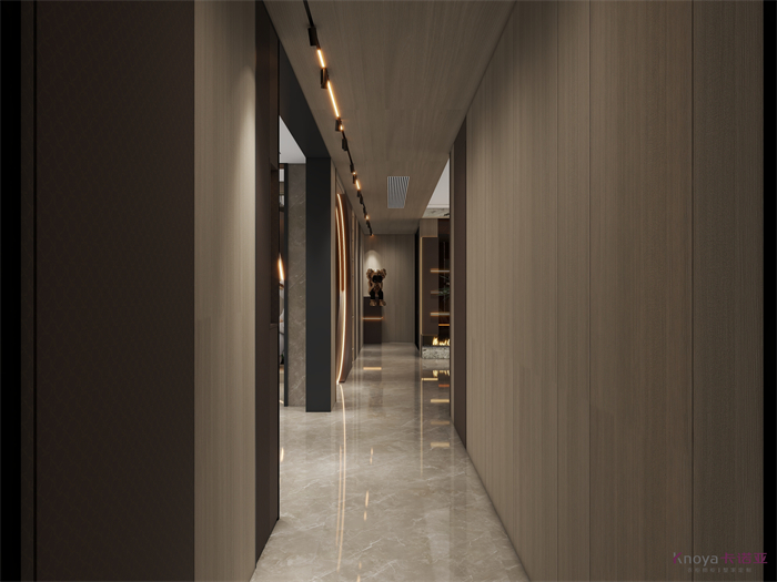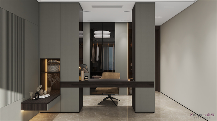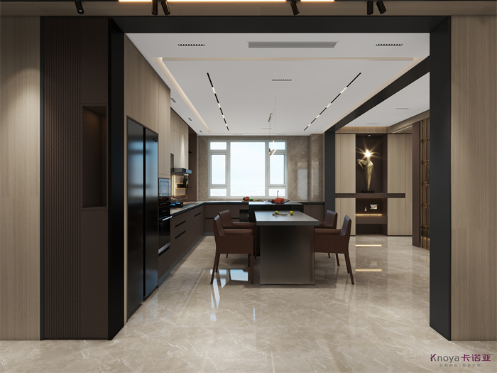 意式極簡既具有意大利文藝複興時期的意蘊,奢華高貴,同時又兼具現代感的幹練高級,深棕色的木飾麵搭配原木色穿插營造的高級感貫穿整個空間,利用材質的對比與反差加強空間的質感感受。優雅與深邃的配色讓空間散發出靜謐感,簡約的線條在訴說永恒的經典,脫離一切的浮華與煩躁。身居清雅地,心無車馬喧,從生活的本質出發,讓它靜下來,感受快節奏都市生活背後的安靜與寧靜。
