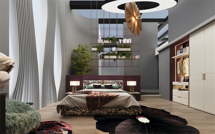 逐夢係列設計靈感上,源於當代精英女性對精致生活的追求,代表著公司白領“忙在臥室”的優雅和獨立。設計手法上,整個臥室空間按一體化多功能打造,滿足辦公、休息、放鬆、娛樂的需求。