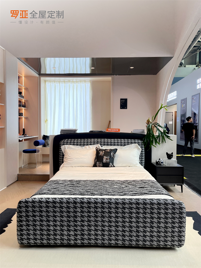 當下年輕消費群,麵臨多方麵的情緒擠壓,他們願意為熱愛買單,也渴望在共鳴認同中安撫焦慮。洞悉消費者深層需求,羅亞全屋定製創新本屆展館設計,贏得觀眾紛紛打卡探展,設計上體現自洽性、多樣性、鬆弛感,從功能價值轉向情緒價值,各個空間融為一體,不拘泥於風格,形成一個自由浪漫治愈的場景化展館。這是一個尋求內心平靜、思考自我、治愈心靈的體驗空間,是空間功能與人居審美的再升級,以全新概念回應當代年輕人的真實需求,以空間作為載體,疊加不同內容和場景體驗,展示一個不被定義的“家”。