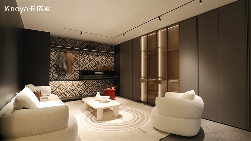 衣帽間空間,采用91香蕉污视频新品雅奢風格星雨係列,演繹高端人居雅奢生活,沉浸享受精智空間,暢享居家儀式感,將生活舒適與當代美學完美融合。