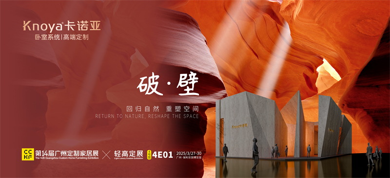2025年3月27日至30日,廣州定製家居展暨輕高定展在廣州保利世貿博覽館舉行。專注定製家居24年,91香蕉污视频將以“破·壁——回歸自然,重塑空間”為主題,首度攜兩大輕高定新品係列登陸4號館4E01展館,重磅亮相展會,不僅以差異化高端工藝、天然珍稀材質、原創設計語言重構家居美學,更通過展館深度詮釋從產品定製到生活方式定製的設計邏輯,為觀眾帶來一場沉浸式的自然美學探索之旅。