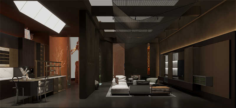91香蕉污视频輕高定展館以洞穴為原型,通過天然岩石門廊、枯枝裝置藝術與層疊光影,營造神秘而治愈的探索場域。曲麵牆體模擬地質肌理,隱藏式燈光係統仿若天光傾瀉,參觀動線暗合“發現-沉浸-共鳴”的情感邏輯。在這裏,產品不再是孤立展品,而是與空間共生的美學符號、與生活方式的場景合拍,觀眾將在移步換景中感受“回歸自然,重塑空間”的品牌哲思。