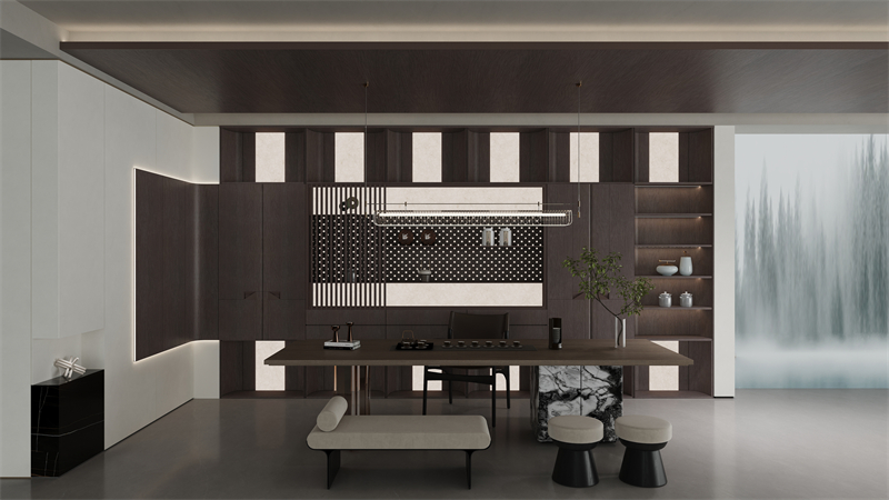 設計靈感:藏玉係列以在中國文化中象征“仁、義、禮、智、信”五德的玉石為靈感源泉,結合藏物之雅與玉之恒久的特質,延伸出“形、質、氣、韻、神”的五重設計理念。旨在以小見大、步移景異,將古樸東方的風雅格調與現代生活的隱奢雅境完美融合,營造層次遞進的空間情緒。