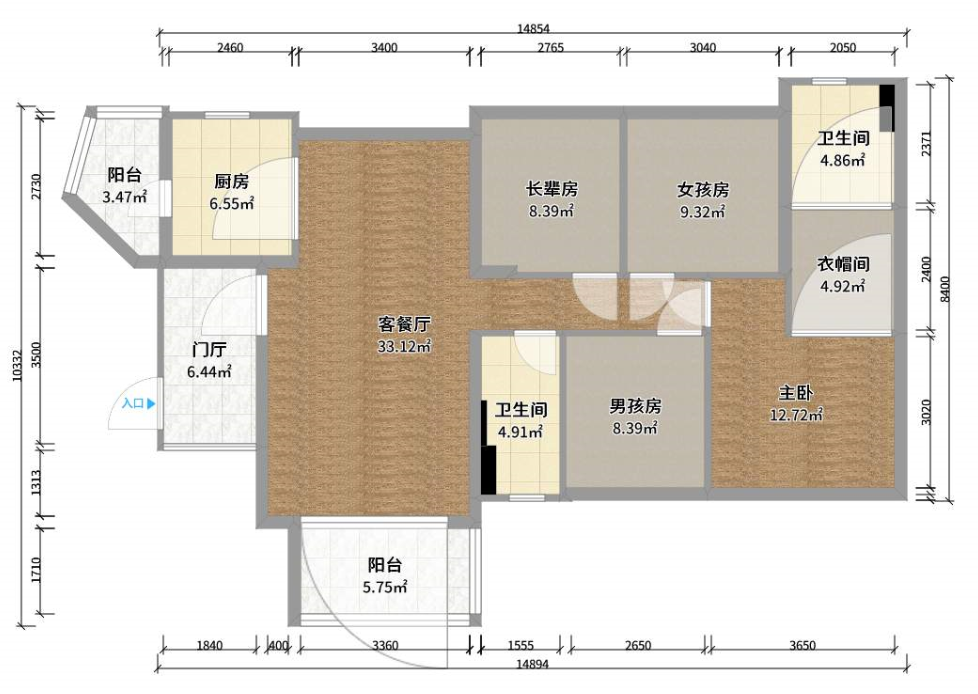 本次案例的房子朝向是東,通風不錯,每個空間都不小。要是能好好設計一下,住50年都沒問題。