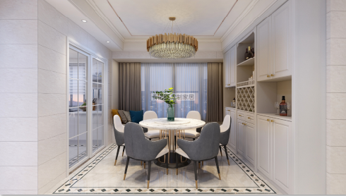 餐廳設計比較簡潔,大理石質感的餐桌,加上簡約造型的靠背椅,輕奢的金屬桌腳,淺色牆麵再配上歐式吸塑造型的櫃門,一切都美得剛剛好。餐邊櫃到頂設計,強大的收納功能,讓香蕉视频污版APP下载不再髒亂雜。