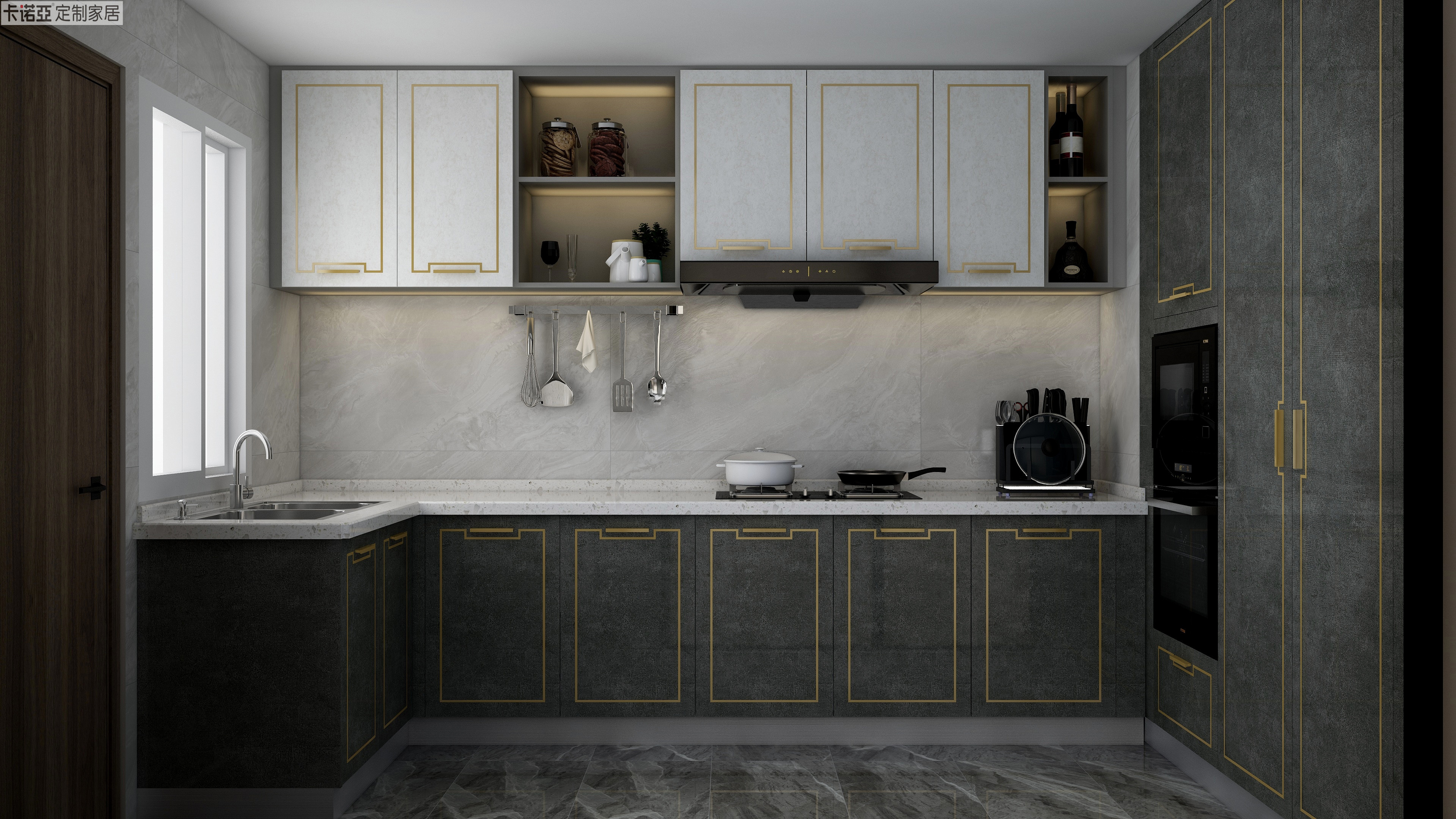 君子遠庖廚,當代君子則樂於下廚。吊櫃地櫃一明一暗的撞色設計,讓香蕉网站免费观看污多了一份視覺層次之美,表麵同樣嵌入回紋型金屬條,高端香蕉网站免费观看污呼之欲出,在這樣的唯美空間一展廚藝,何樂而不為?