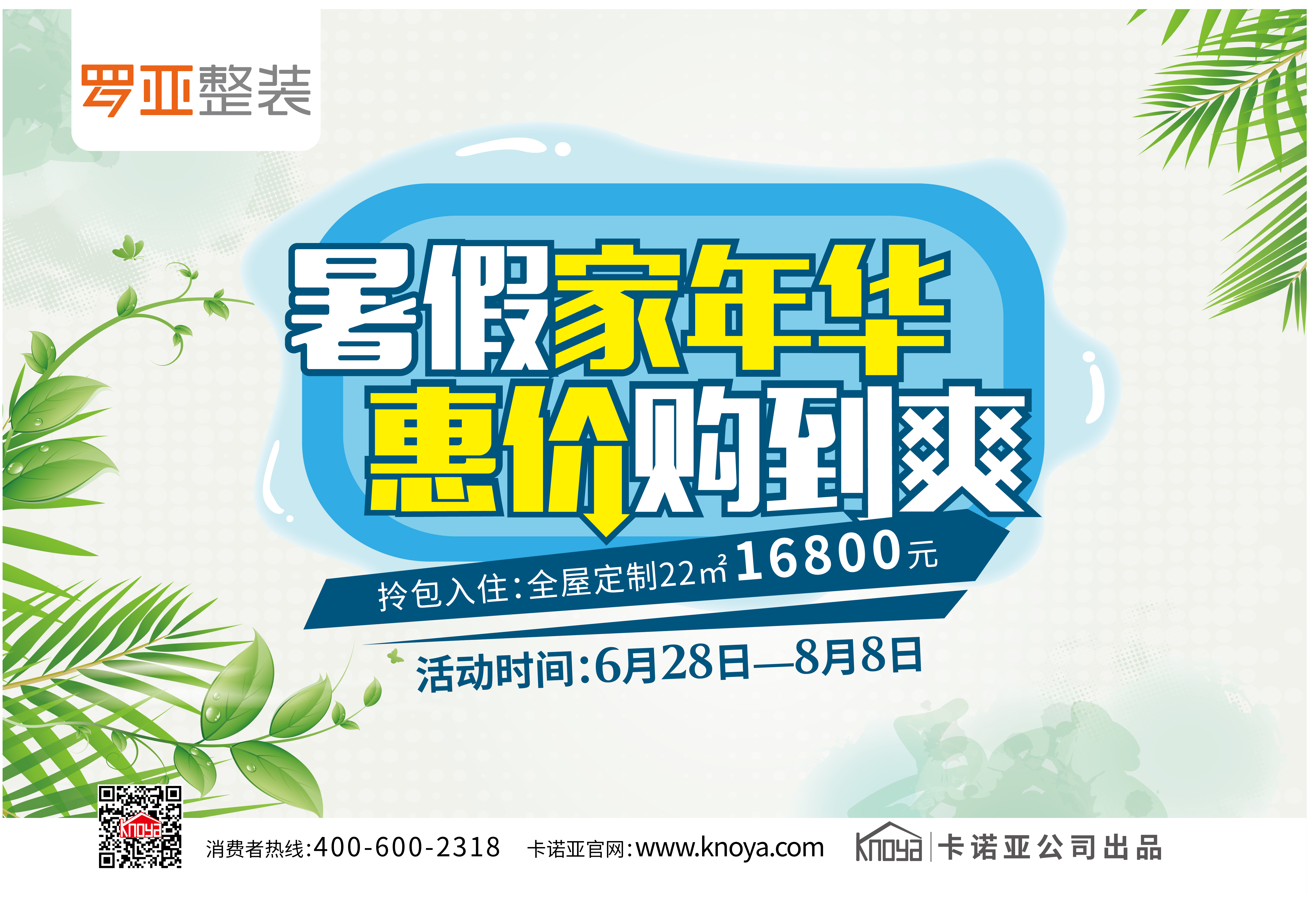 仲夏來襲,烈日炎炎,也是家居裝修的旺季。這個夏天,羅亞整裝的清爽套餐為你解決所有的家裝煩惱,6月28日-8月8日,91香蕉污视频定製家居旗下的羅亞整裝品牌,針對當前廣受青睞的一站式拎包入住家裝服務,誠意推出“暑假家年華,惠價購到爽”整裝瘋搶季讓利活動,現代全屋套餐¥16800、簡歐全屋套餐¥22800、櫥櫃套餐¥4680三大套餐钜惠來襲,讓消費者實現一家購齊、一省到底。