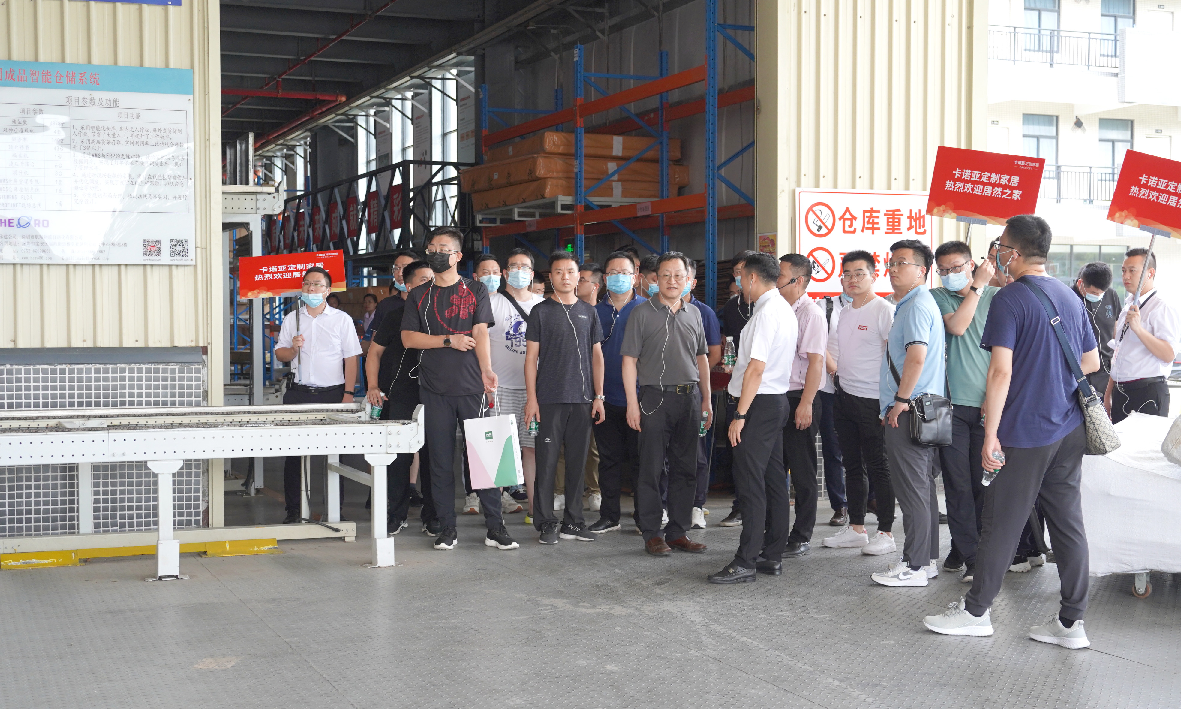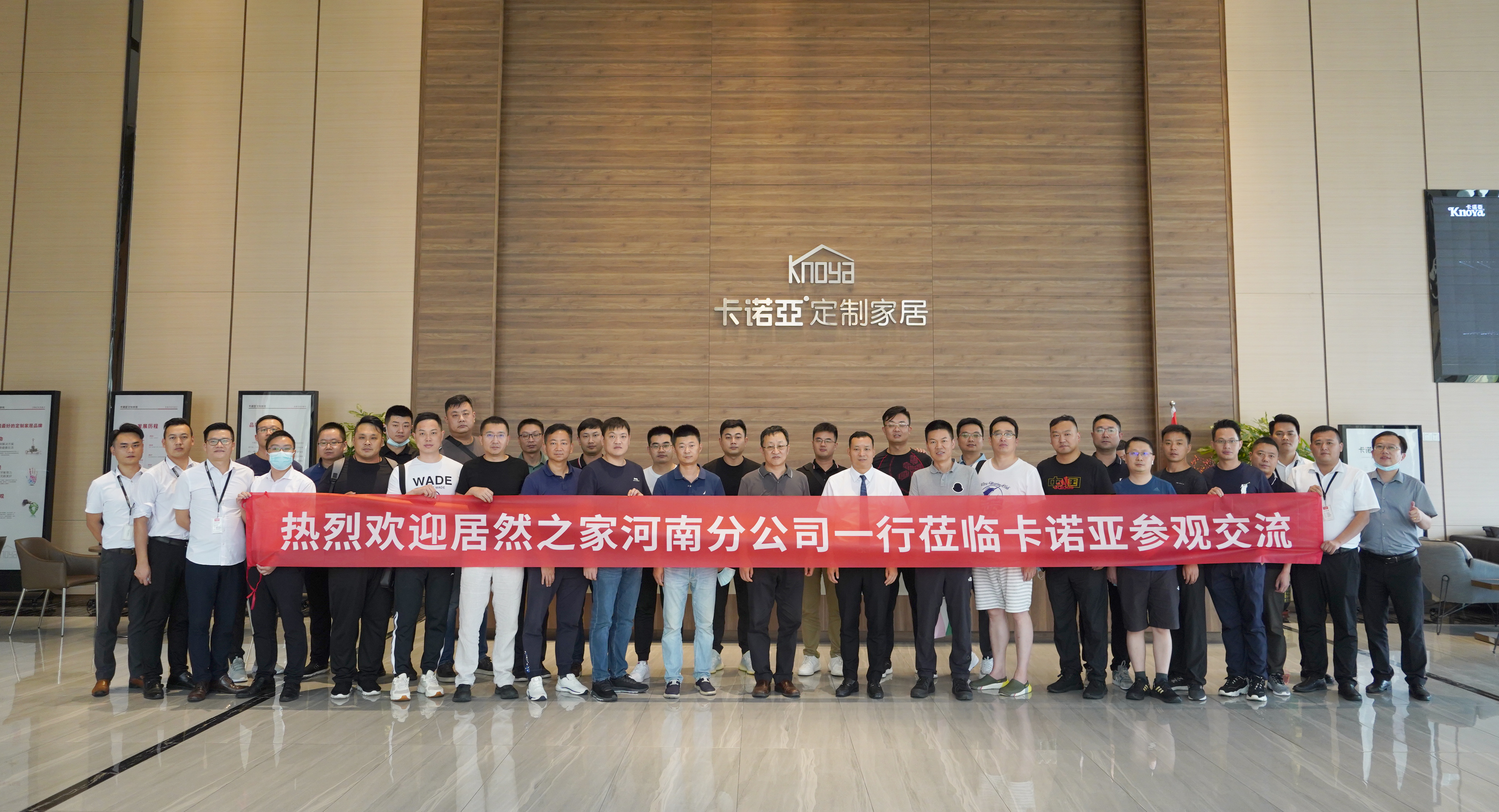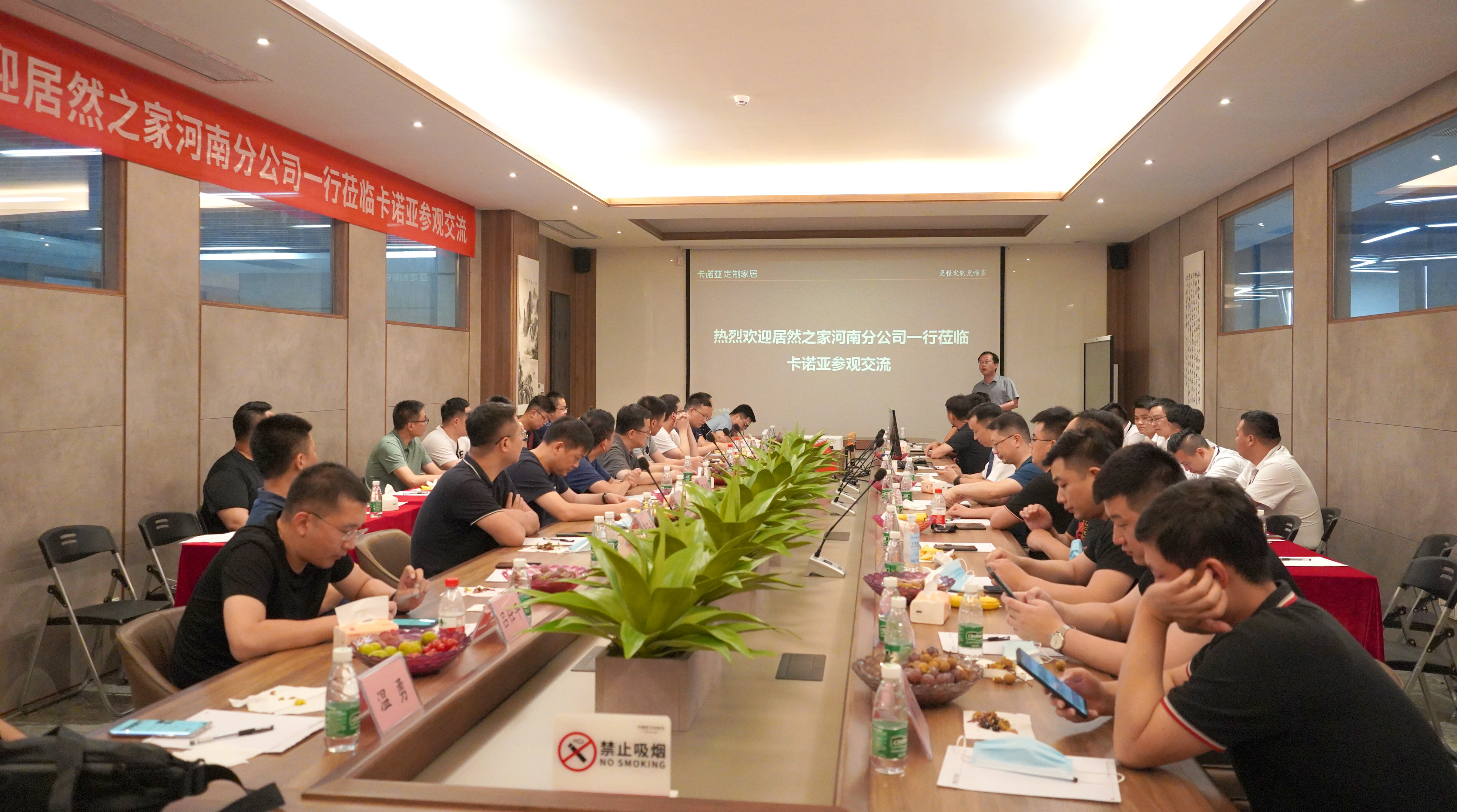 7月21日,居然之家河南分公司總經理張健先生攜同河南各分店總經理一行30多人,蒞臨91香蕉污视频定製家居清遠工業4.0製造基地參觀考察交流。91香蕉污视频定製家居營銷副總經理李偉明等公司高層全程陪同,雙方就布局河南市場的合作事宜進行深入的探討。