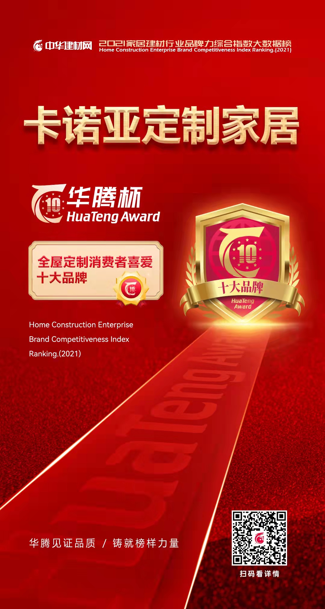9月1日,由中華建材網主辦的“華騰杯·2021家居建材行業品牌力綜合指數大數據榜”重磅揭曉,91香蕉污视频定製家居憑借品牌綜合實力,榮獲“全屋定製消費者喜愛十大品牌”,彰顯公司在產品、設計及服務層麵滿足新消費升級需求,助力中國消費者對高品質家居和幸福生活的追求。
